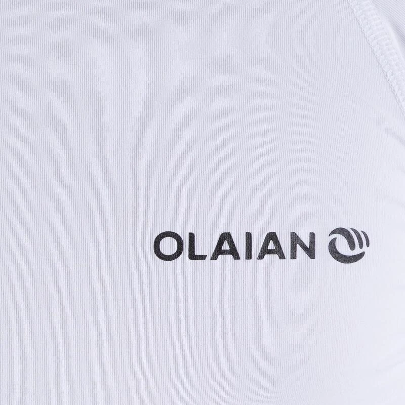 Le textile qui compose ce produit anti-UV OLAIAN permet de bloquer au minimum 98 % des UVB et 95 % des UVA (UPF 50+). C’est la garantie d’une protection efficace contre le soleil. Il peut être utilisé dans et hors de l’eau pour la pratique des sports nautiques et aquatiques. La filtration des UV est générée par la densité des fibres textiles, cette protection dure dans le temps, même après lavage. Attention, l’élastane contenue dans la fibre peut se détériorer dans l’eau chlorée.