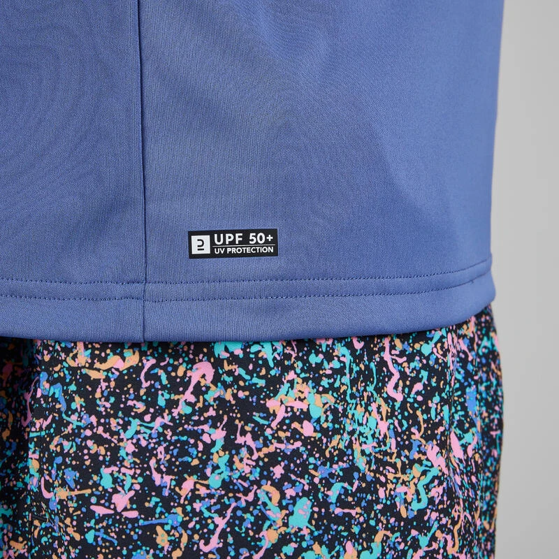 Ce t-shirt anti-UV limite les frottements avec la planche de surf ou de bodyboard. La coupe ample du tee shirt permet un enfilage plus facile et un meilleur confort lorsqu’il est sec. Optez pour la coupe ajustée du top 100 ou 500 si vous privilégiez le confort mouillé ou si vous le portez sous la combi. La limitation des irritations est validée pour des sessions d’1 heure. Si vous prévoyez de surfer plus d’1h le choix du top UV 500 sera plus adapté grâce aux panneaux sans couture sous les bras.